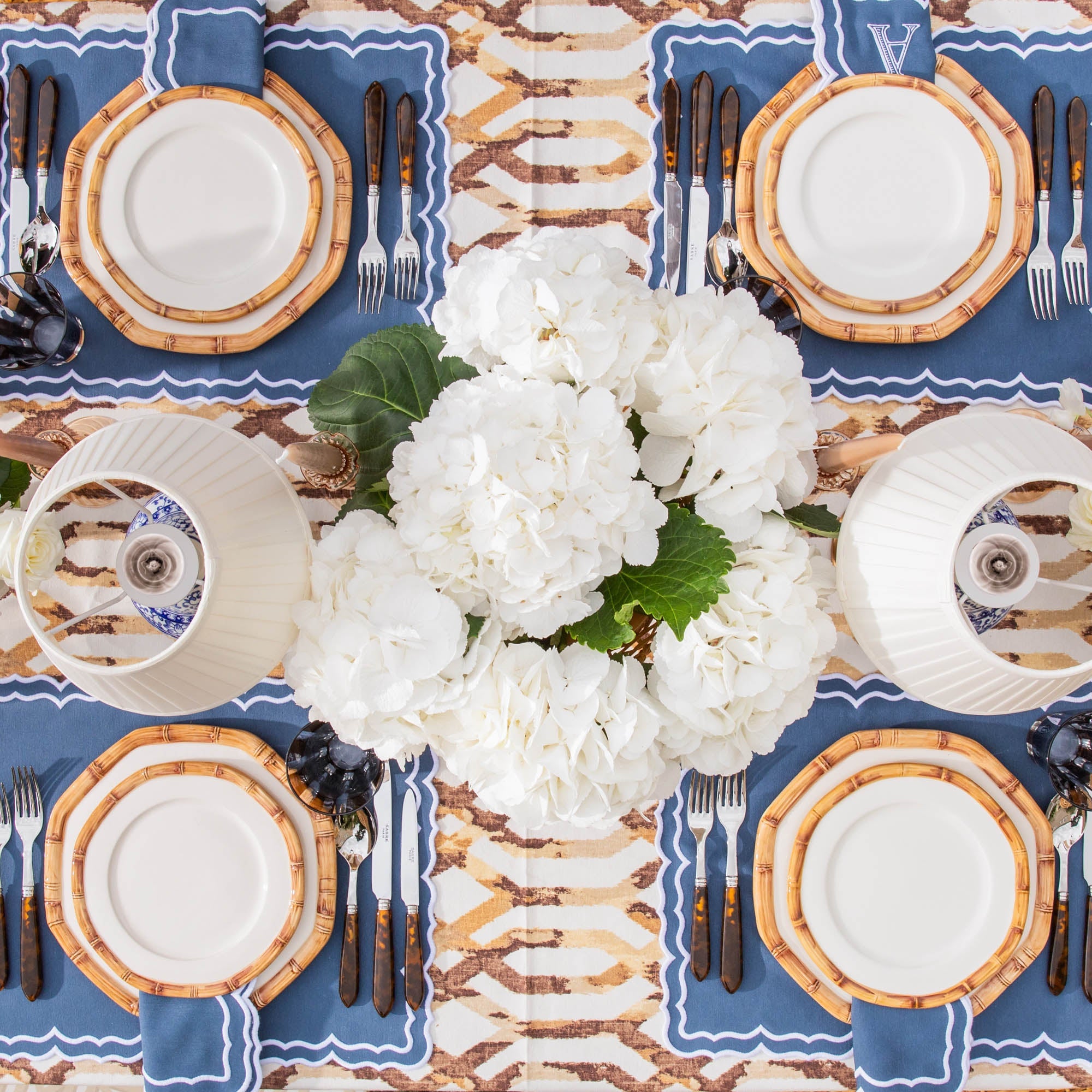 Our Natural Bamboo Starter plate is elegantly hand painted in Italy. Its octagonal Bamboo rim adds a unique touch to this retro inspired plate.