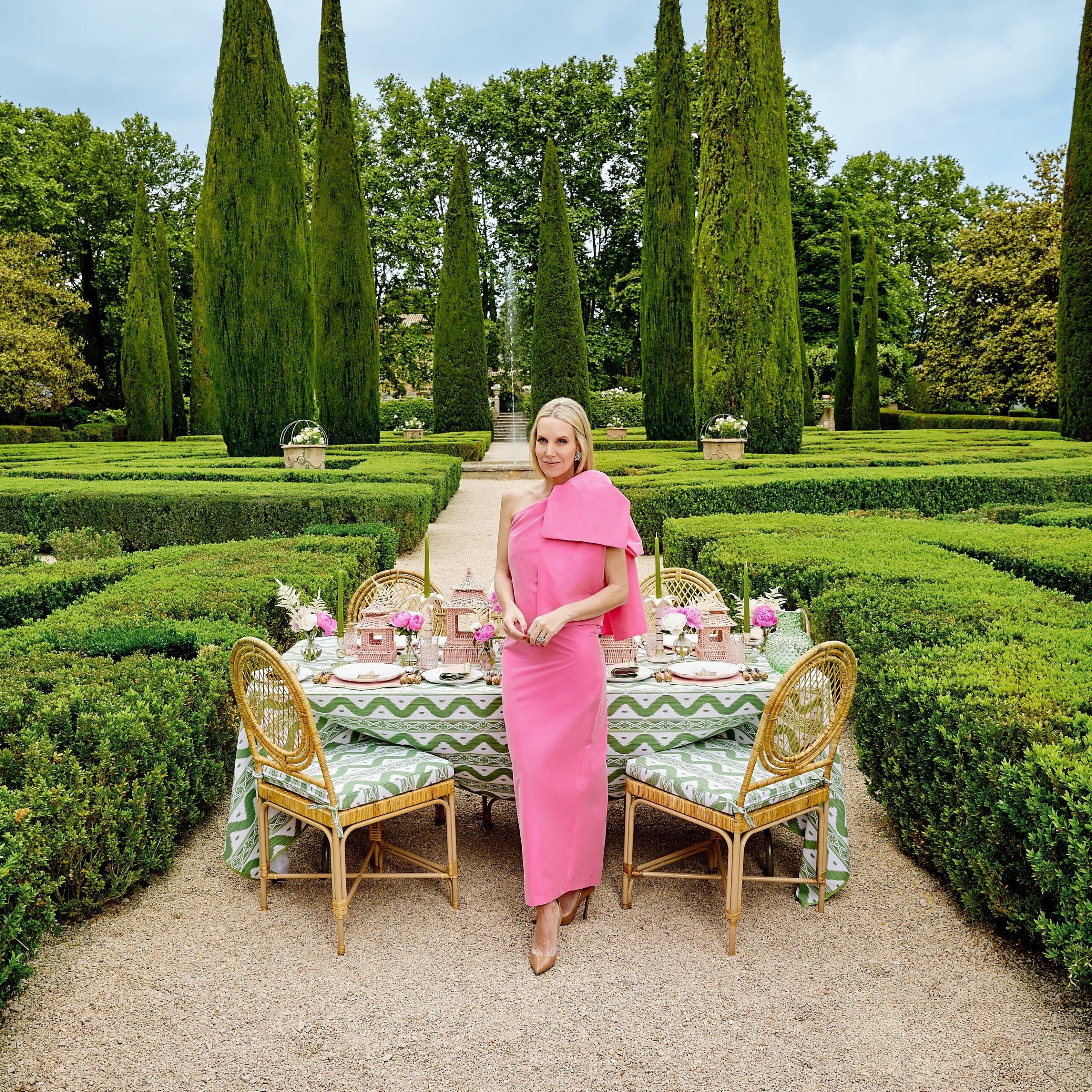 Designed by Alice’s Mother Serena, this plate is matched with our Pink & Green Scalloped Pagoda Dinner Plate, Pink Bamboo Trellis Tablecloth & Pink Penelope Linen.